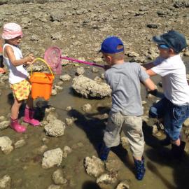 PECHE A PIED : les plages de Quiberon n'auront plus de secrets pour nos petits moussaillons. Pendant les balades en bord de mer, l'équipe d'animation proposera des sessions de pêche à pied pour permettre aux enfants d'explorer la faune et la flore locale. À marée basse, observation/identification, gestes responsables (remettre les pierres, respecter tailles/quotas).