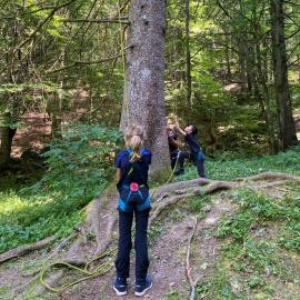 GRIMPE D’ARBRES : un guide de montagne diplômé d’État encadrera des séances de grimpe d’arbres, avec possibilité de bivouac.
