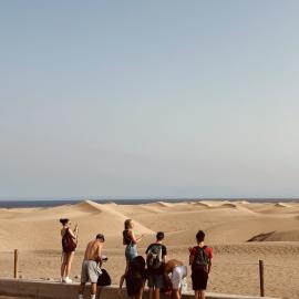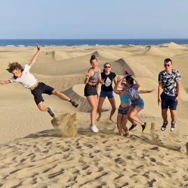Ensuite, cap sur Gran Canaria en ferry, où le groupe découvrira des paysages très diversifiés. Les jeunes exploreront les dunes de Maspalomas, un véritable désert en bord de mer, et randonneront dans les montagnes de l’intérieur de l’île, comme le Roque Nublo. Ils auront également l’occasion de visiter Las Palmas, une ville animée qui mêle modernité et traditions, avec ses quartiers historiques et ses marchés colorés.