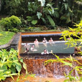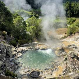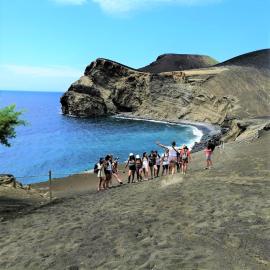 L’île de São Miguel : son origine volcanique offre des paysages spectaculaires. Lors de randonnées les jeunes pourront admirer du sommet de la caldeira, les lacs de Sete Cidades et Lagoa do Fogo aux eaux bleutées, nichés au fond de volcans éteints. La vallée de Furnas permettra d’observer : sources d’eau chaude, fumerolles, boues en ébullition...Et pourquoi ne pas goûter au cozido das Furnas, plat cuit à la chaleur des émanations volcaniques, avant de barboter dans les sources d’eau chaude (38°) de Caldeira Velha, niché au cœur d’une végétation tropicale.