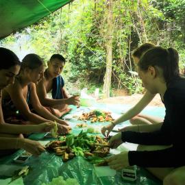 Le parcours se poursuivra au parc national de Phong Nha Ke Bang : randonnées en forêt tropicale et navigation sur le Nuoc Mooc Ecotrail pour explorer les grottes et profiter de lieux de baignades paradisiaques. Cette étape offrira une parenthèse nature, entre cours d’eau translucides et reliefs karstiques.